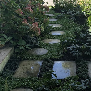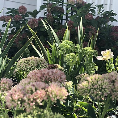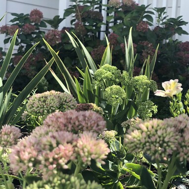 Our client wanted a garden space instead that would be a pleasure to come home to, that felt in keeping with the house and provided flowers and interest all year round. With a mix of shade tolerant foliage plants combined with more classic florals such as alstroemerias and hellebores, we created a garden that sits perfectly alongside the architecture of the house and provides colour and beauty through all seasons.